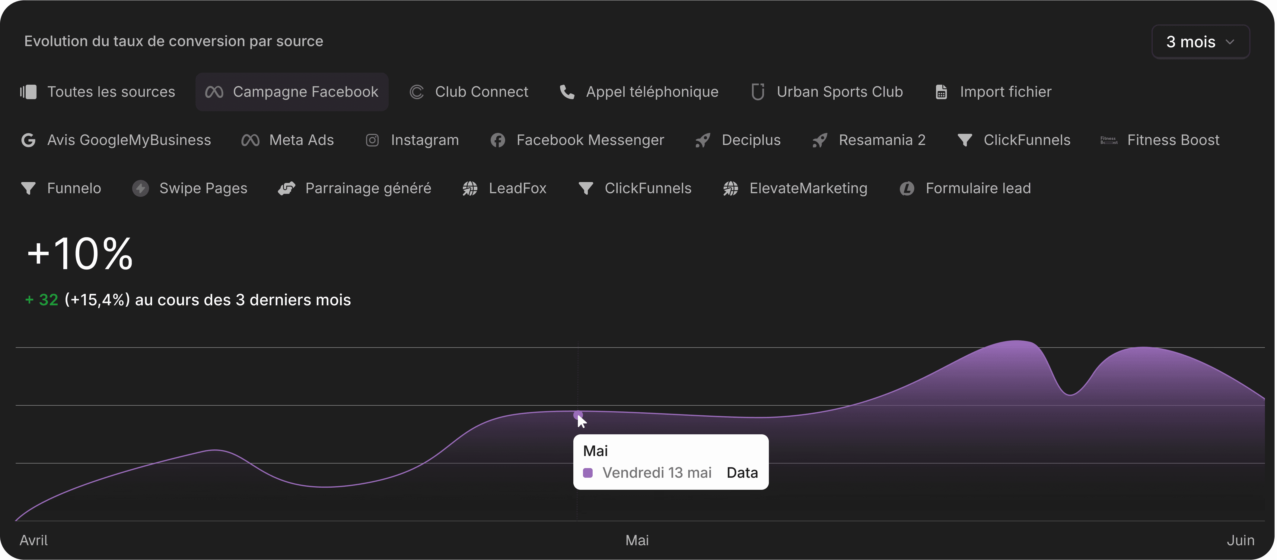 Agrégez, segmentez et visualisez les données dans votre club. Comprenez plus rapidement quels sont les principaux leviers de croissance de votre salle de sport