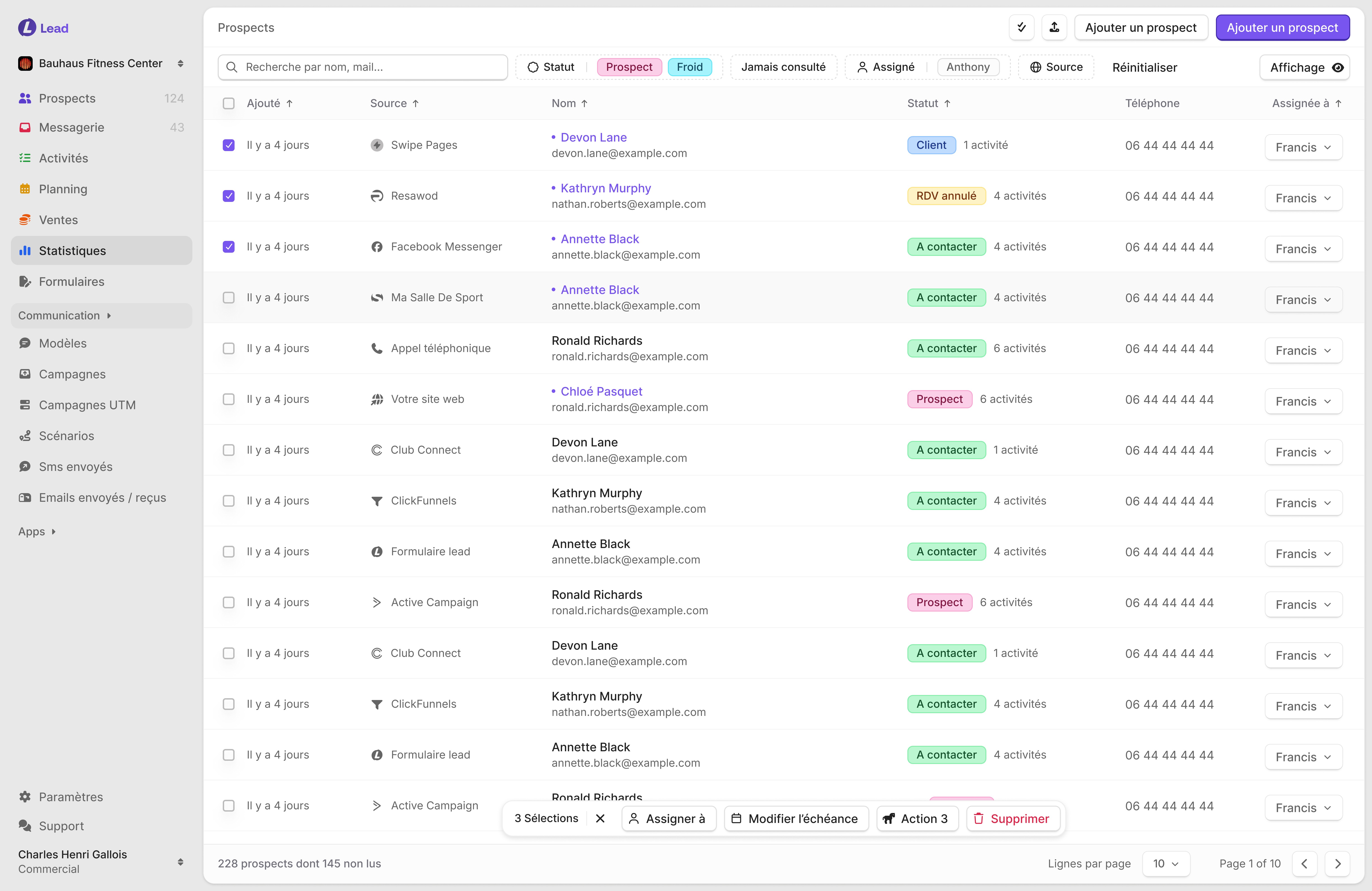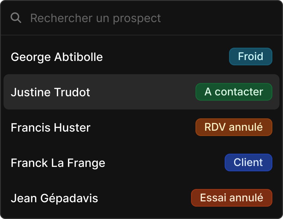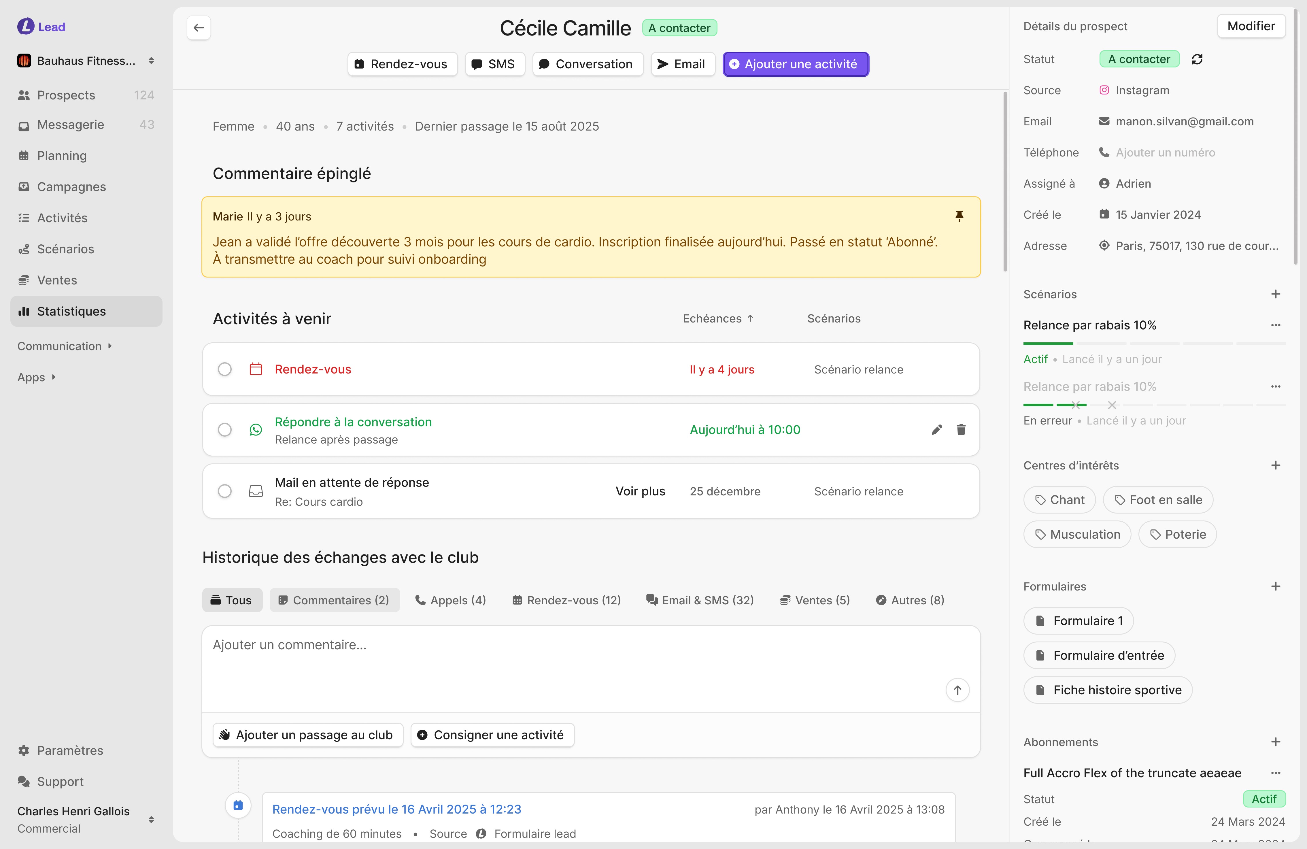 Triez et naviguez rapidement dans tous les types d'activités créés avec vos prospects, ainsi que toutes vos notes associées