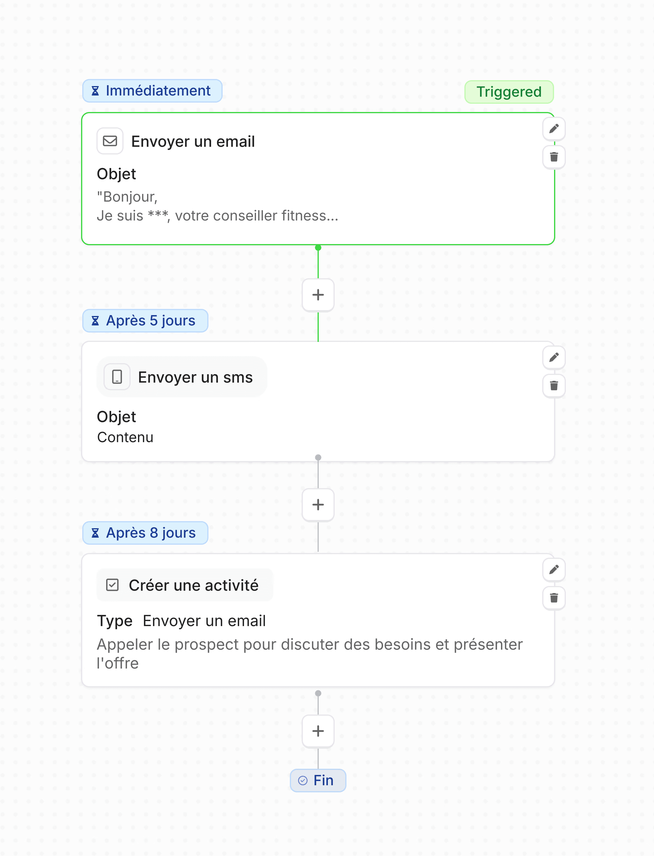 Lancez manuellement ou automatiquement des scénarios précis, adaptés aux besoins de chaque prospects